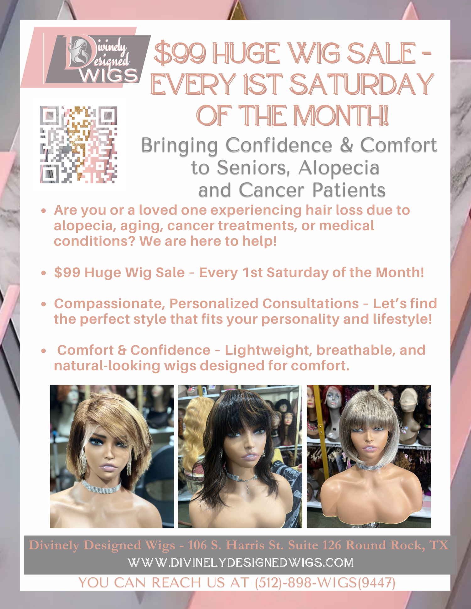 Book Your Private Consultation Today or Set Your Calendar for the $99 Wig Sale on Saturday, April 5th!