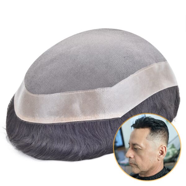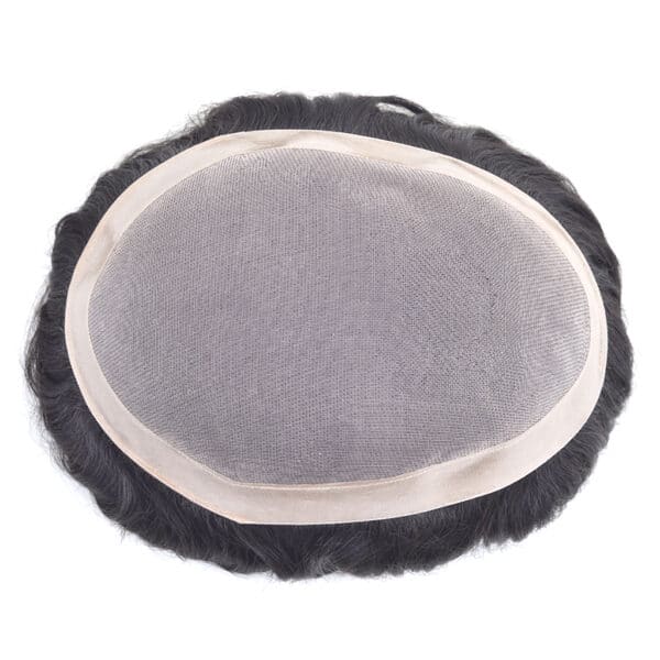 This is one of the most durable base designs. The base is a strong fine mono in the middle with a durable PU coating perimeter. The front is 1/8” folded mono lace. This fine mono hairpiece can last for a very long time.
