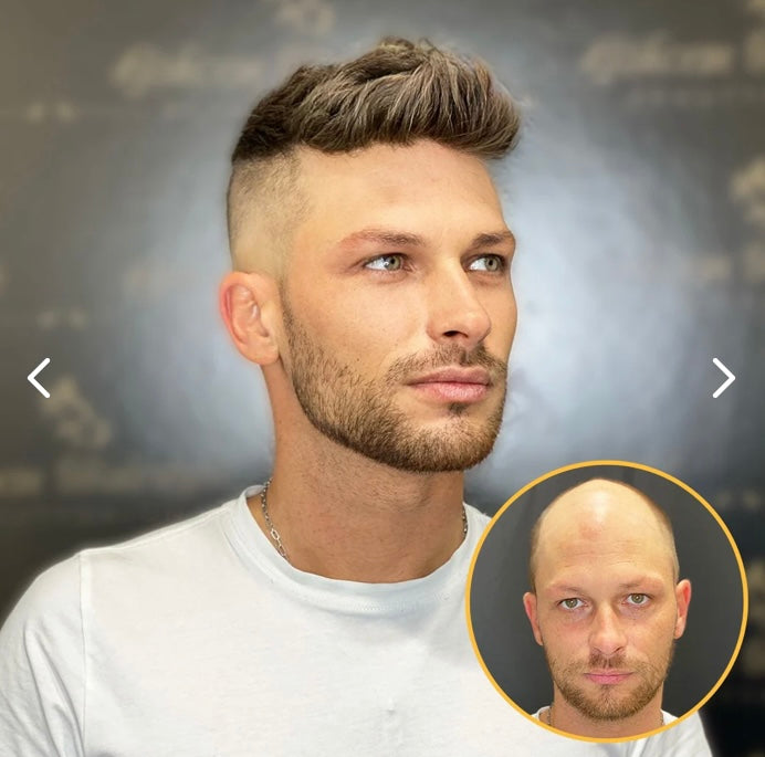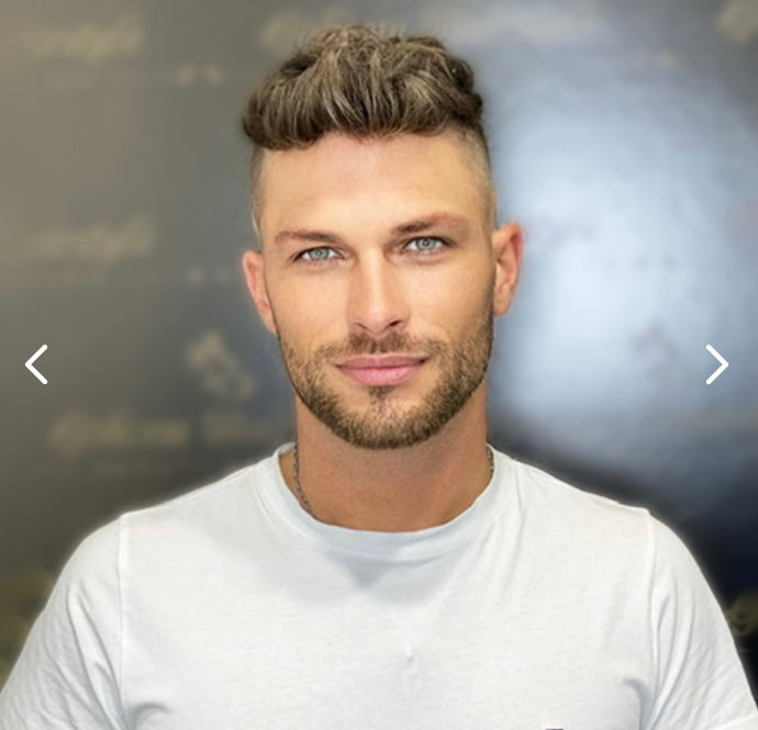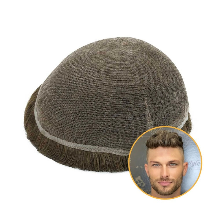 This HS7 full Swiss lace hair system for men consists of a Swiss lace base and 100% human hair.