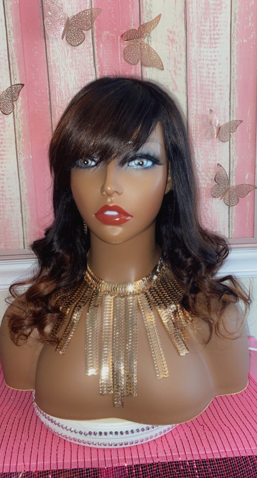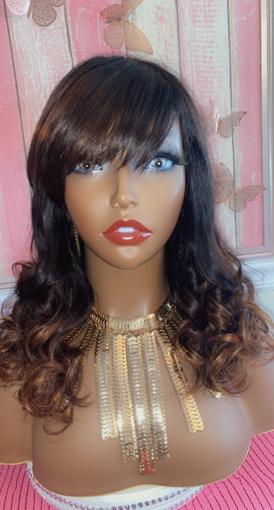 Loni, China Bang, 100% Human Hair No Lace, Ombre 14 Inches