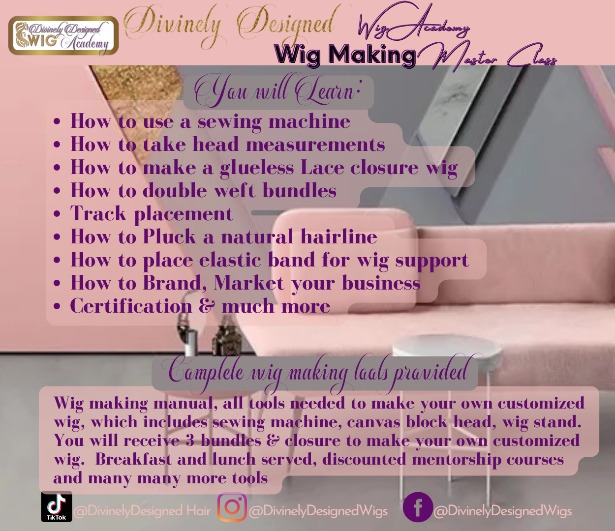 Don’t miss this opportunity to Learn How to make your own wigs or Start your Wig Business where all the attention is on you, no other student