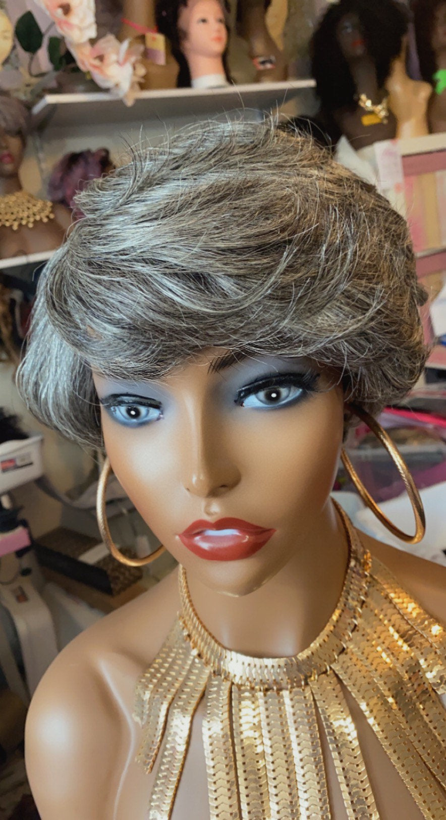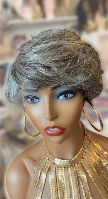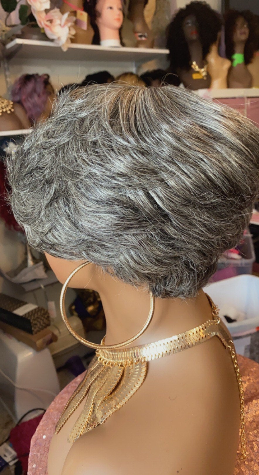 Spicee - 100% Human Hair (No Lace) Salt and Pepper Pixie Wig