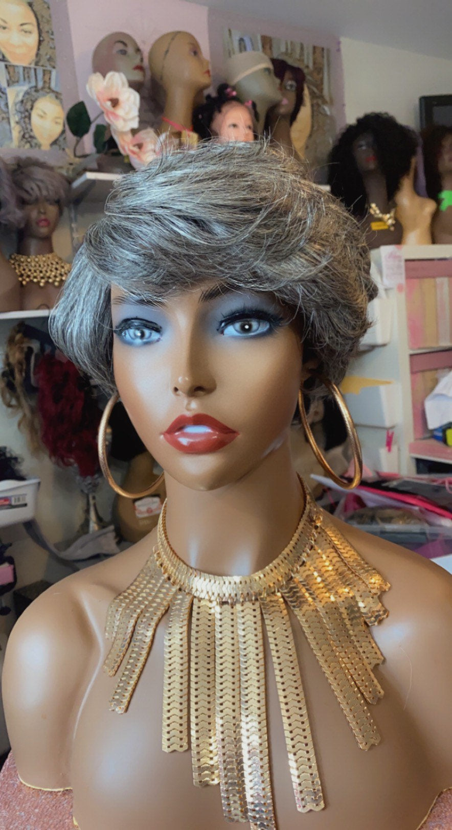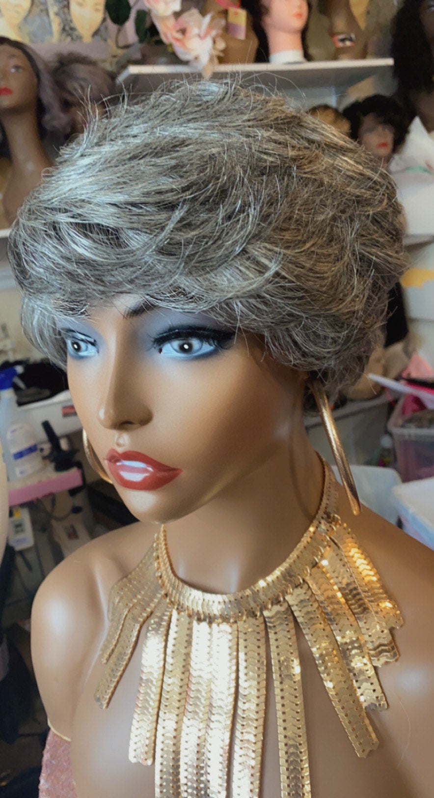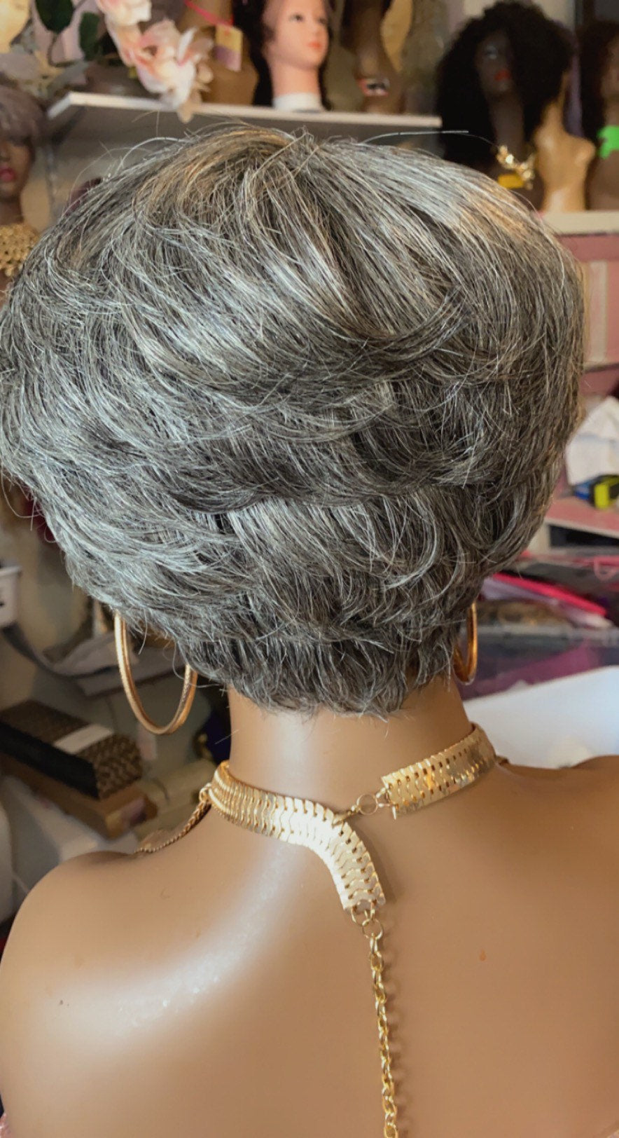Spicee - 100% Human Hair (No Lace) Salt and Pepper Pixie Wig