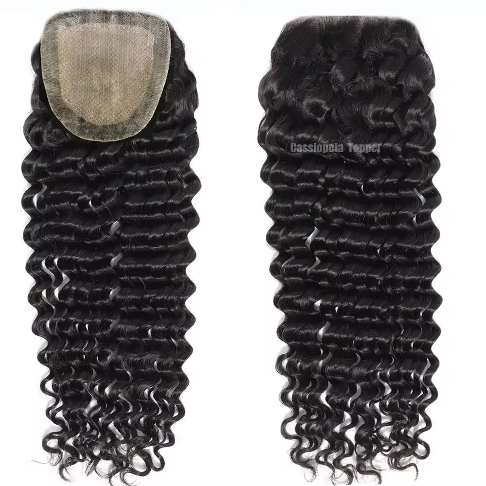 - 16 Inch New Breathable Natural Skin Base Topper 15x16cm 2cm PU Around Virgin Human Hair Curly Topper for Thinning Hair